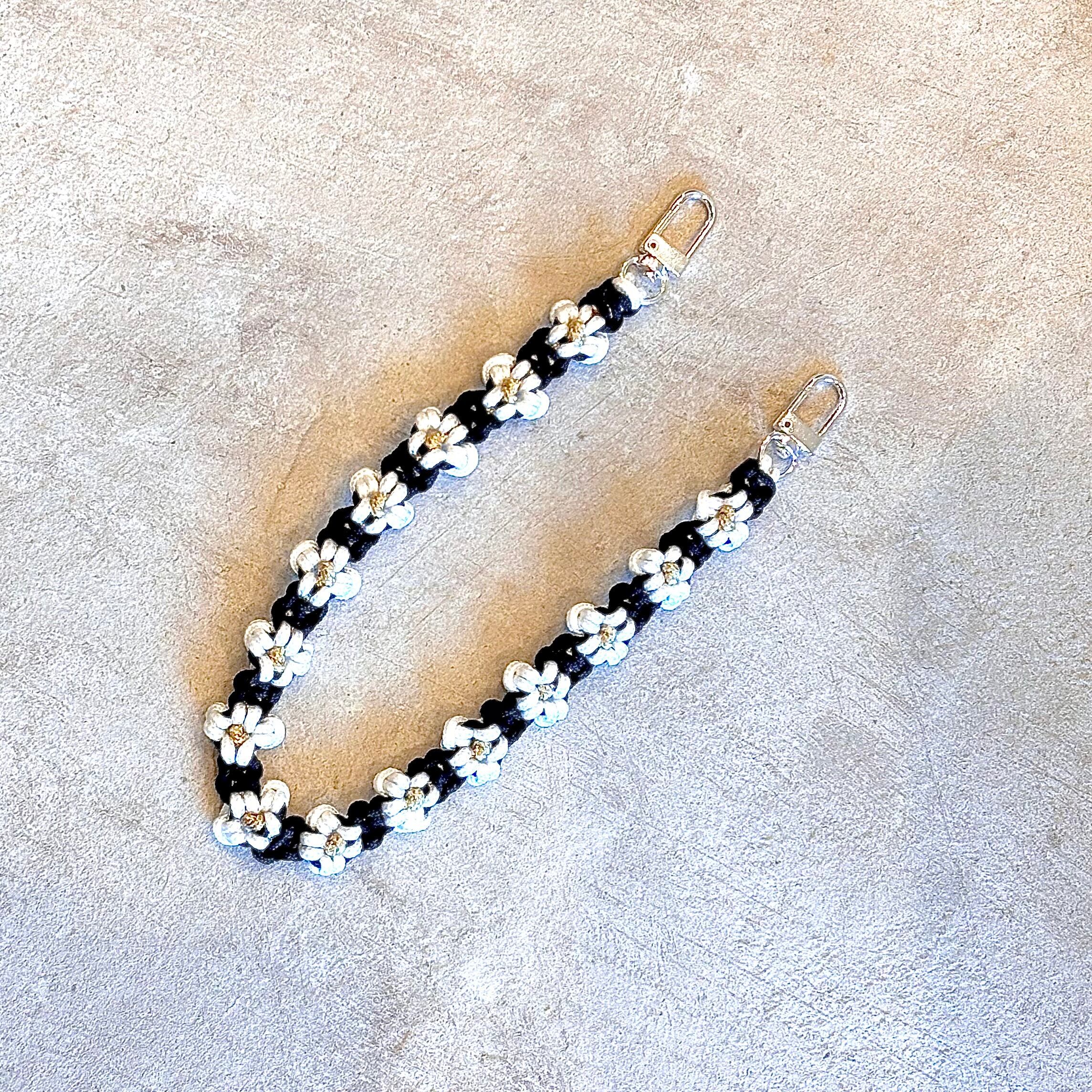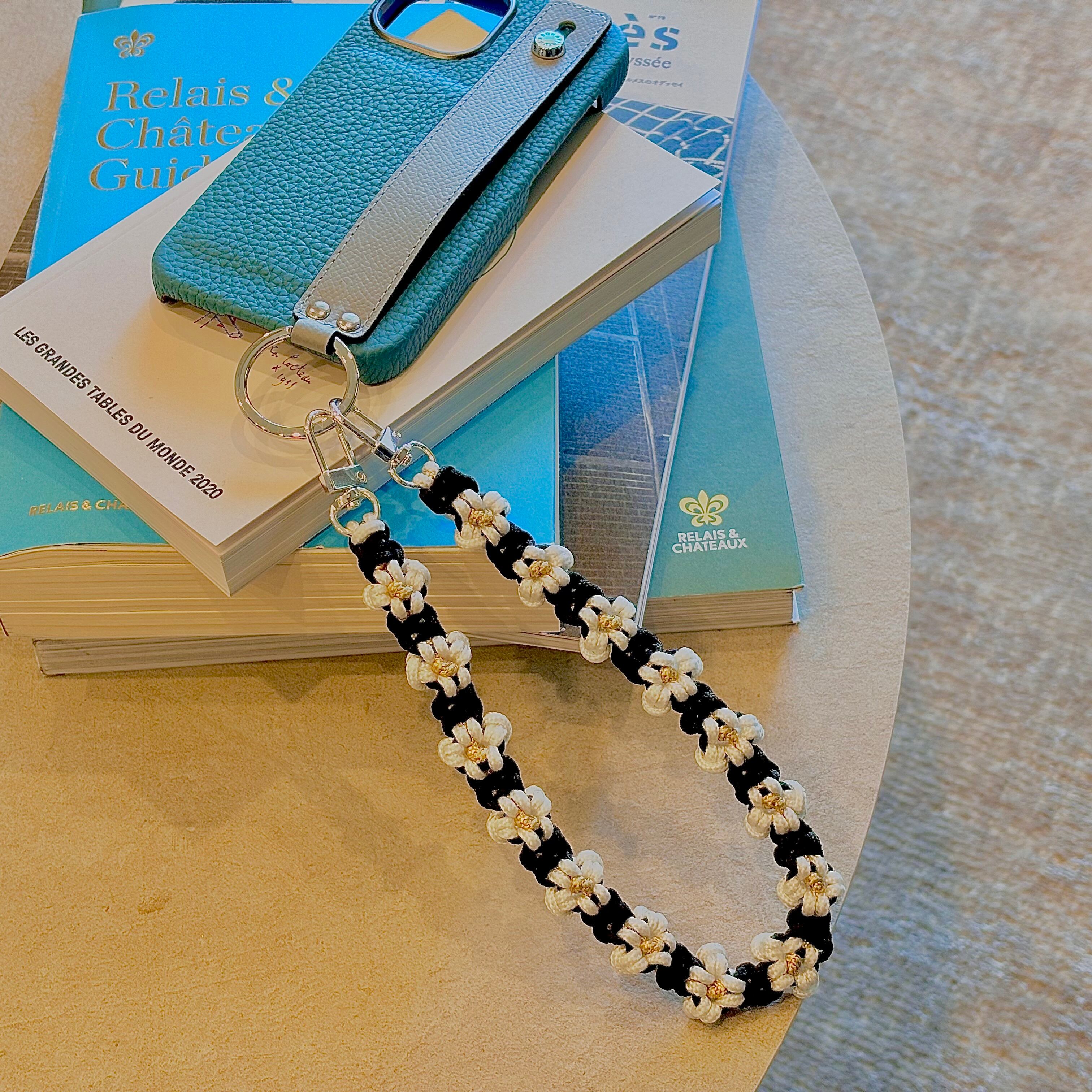 ブラックのストラップは、お花の白とのコントラストがおしゃれでポップな印象でどんなコーディネートにもマッチします。ブラックのさアクセントがスマートフォンをおしゃれに彩ります。手首にかけ落下防止はもちろん、バッグハンドルに下げても可愛い一品です。